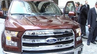 Ford Unveils New F150 Aluminum Truck With a Tricked-Out Tailgate, Ford shows off its new aluminum F-150 pickup truck, the best-selling U.S vehicle for the last 32 years, outside of the New York Stock Exchange. Ford U.S. Director of Marketing Chantel Lenard addressed concerns about the strength and durability of the military-grade aluminum used in the new trucks. Lenard also detailed new features in the truck bed and changes in the tailgate - it can be lowered with a remote button and also has a pull out step. The new F150 goes on sale this summer.